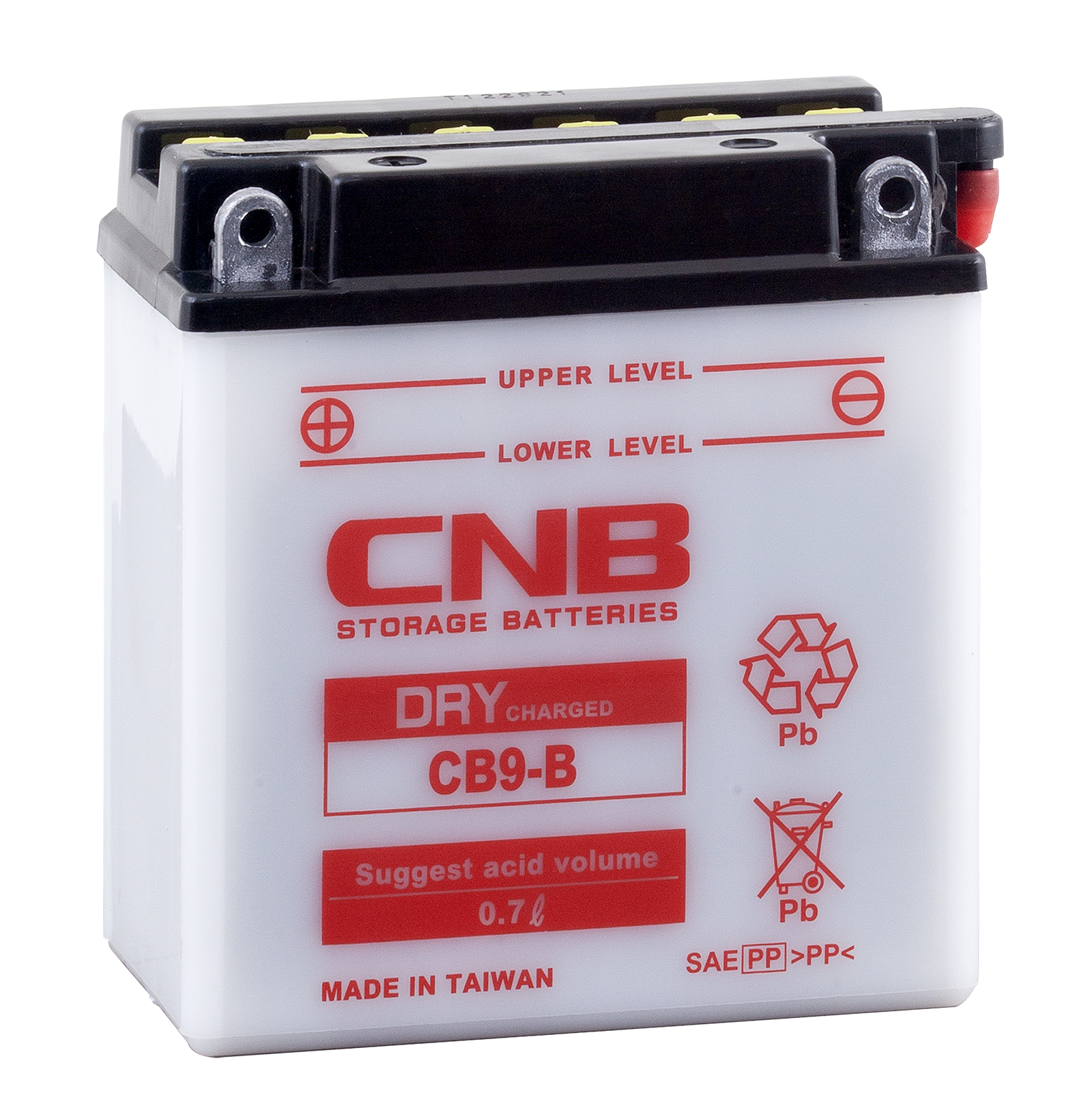 CNB CB9-B är ett kraftfullt och robust öppet blybatteri , idealiskt för utrustning där hög driftsäkerhet krävs. Våtcellsdesignen är konstruerad för att regelbundet fylla på med nytt batterivatten, vilket vilket krävs för denna typ av batteri.