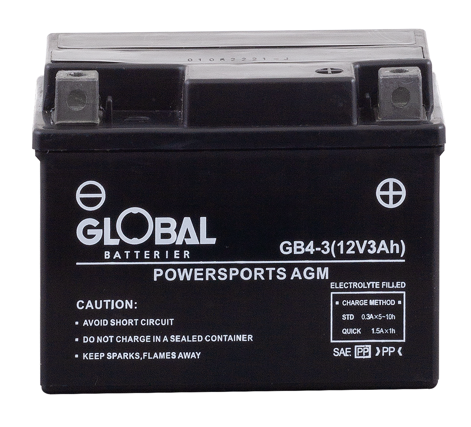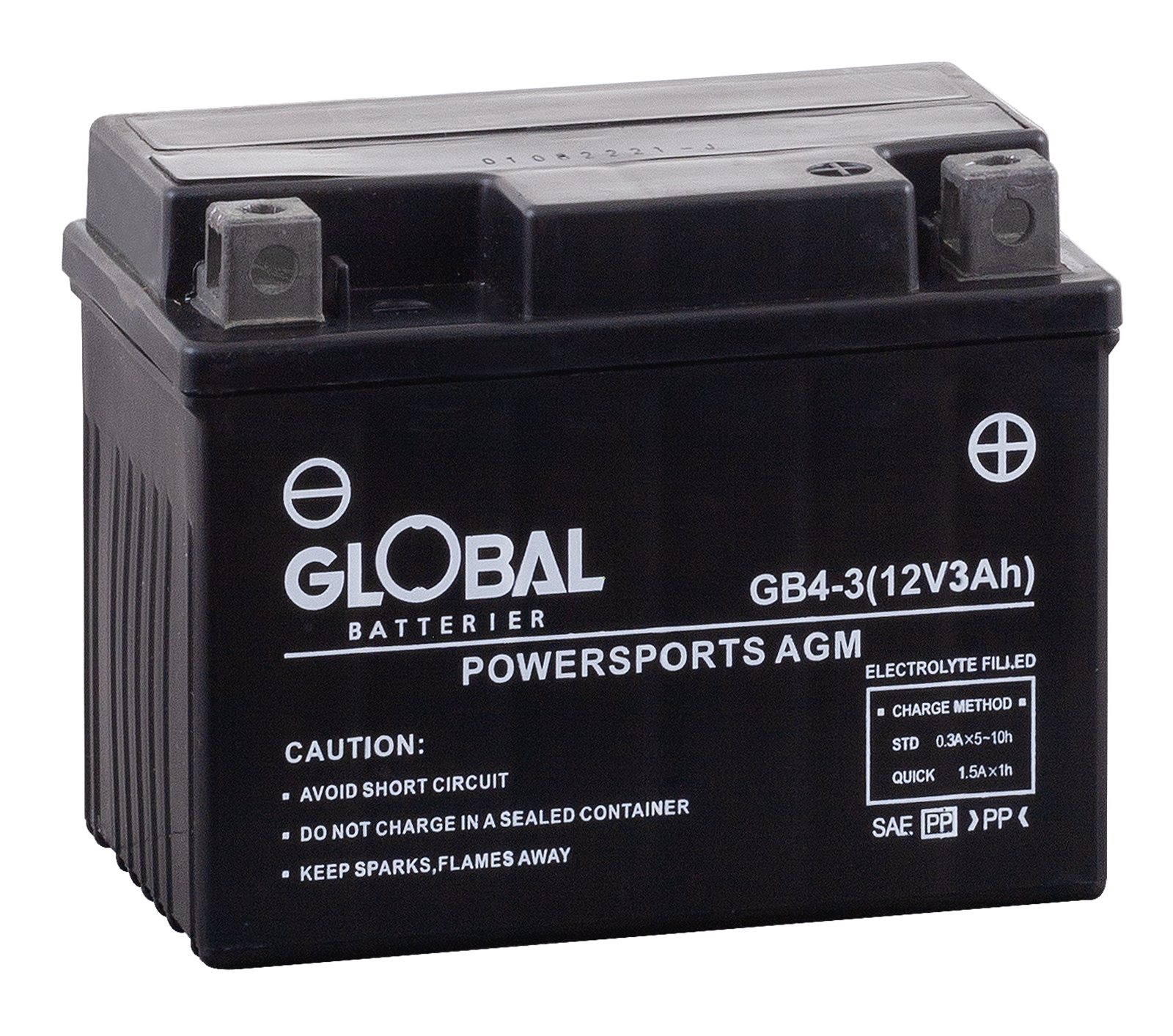 Global GB4-3 är ett pålitligt och högpresterande AGM-batteri (Absorbent Glass Mat), tillverkat av högkvalitativa material. Den avancerade AGM-tekniken gör batteriet underhållsfritt och helt läckagesäkert. Flexibel design möjliggör montering i flera positioner, inte enbart vertikalt.