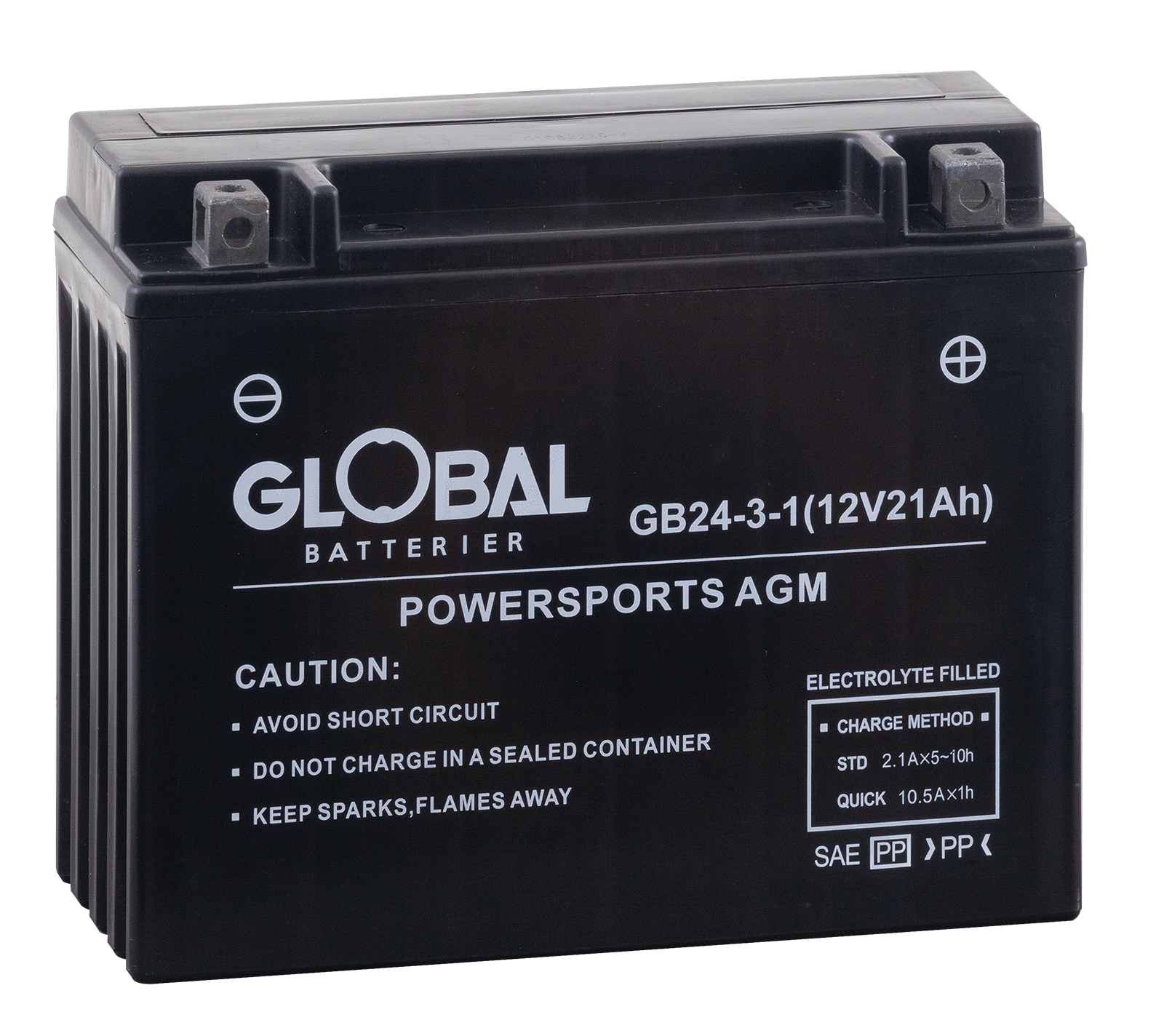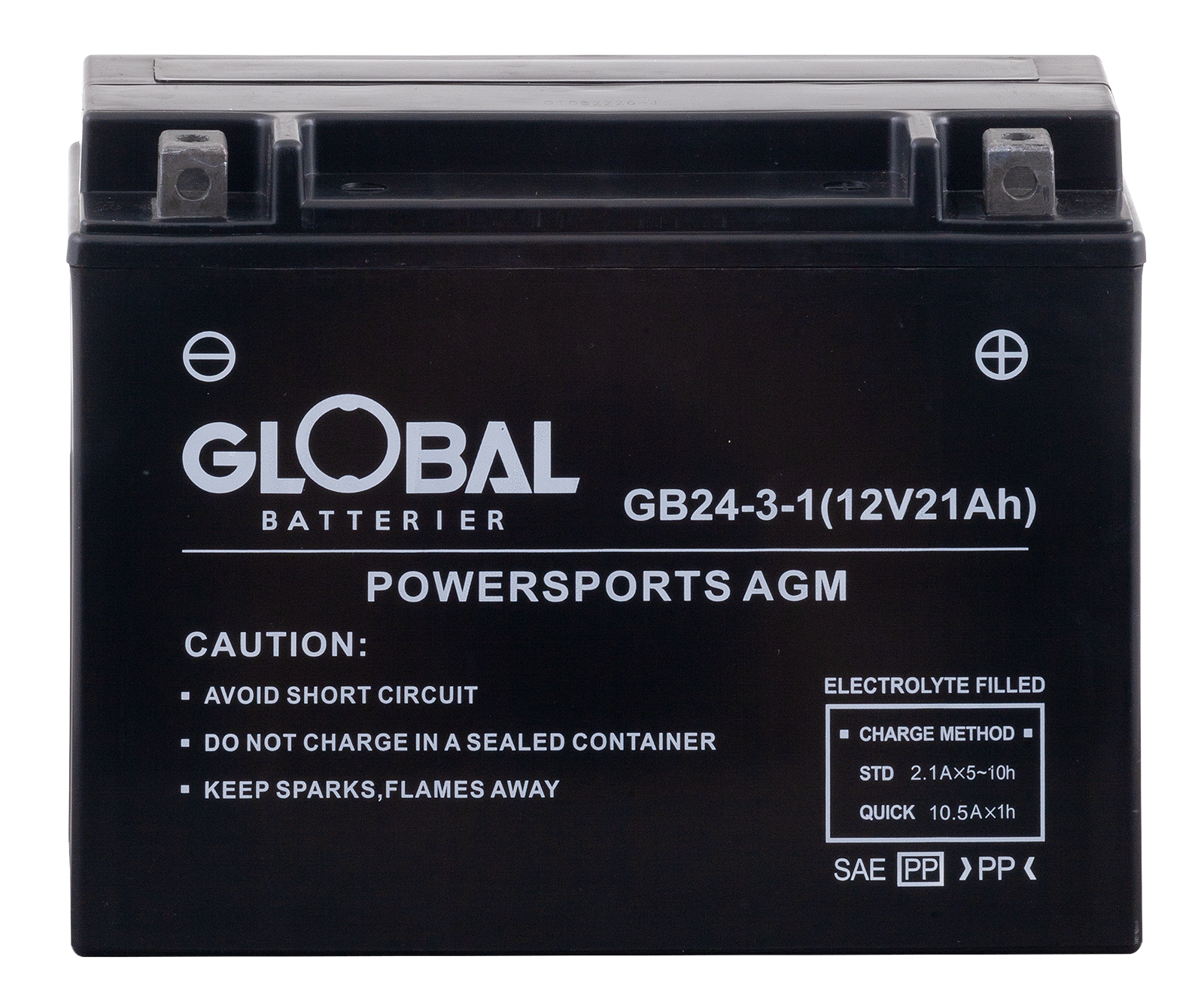 Global GB24-3 är ett pålitligt och högpresterande AGM-batteri 12V 21Ah, tillverkat av högkvalitativa material. Den avancerade AGM-tekniken gör batteriet underhållsfritt och helt läckagesäkert. Flexibel design möjliggör montering i flera positioner, inte enbart vertikalt.