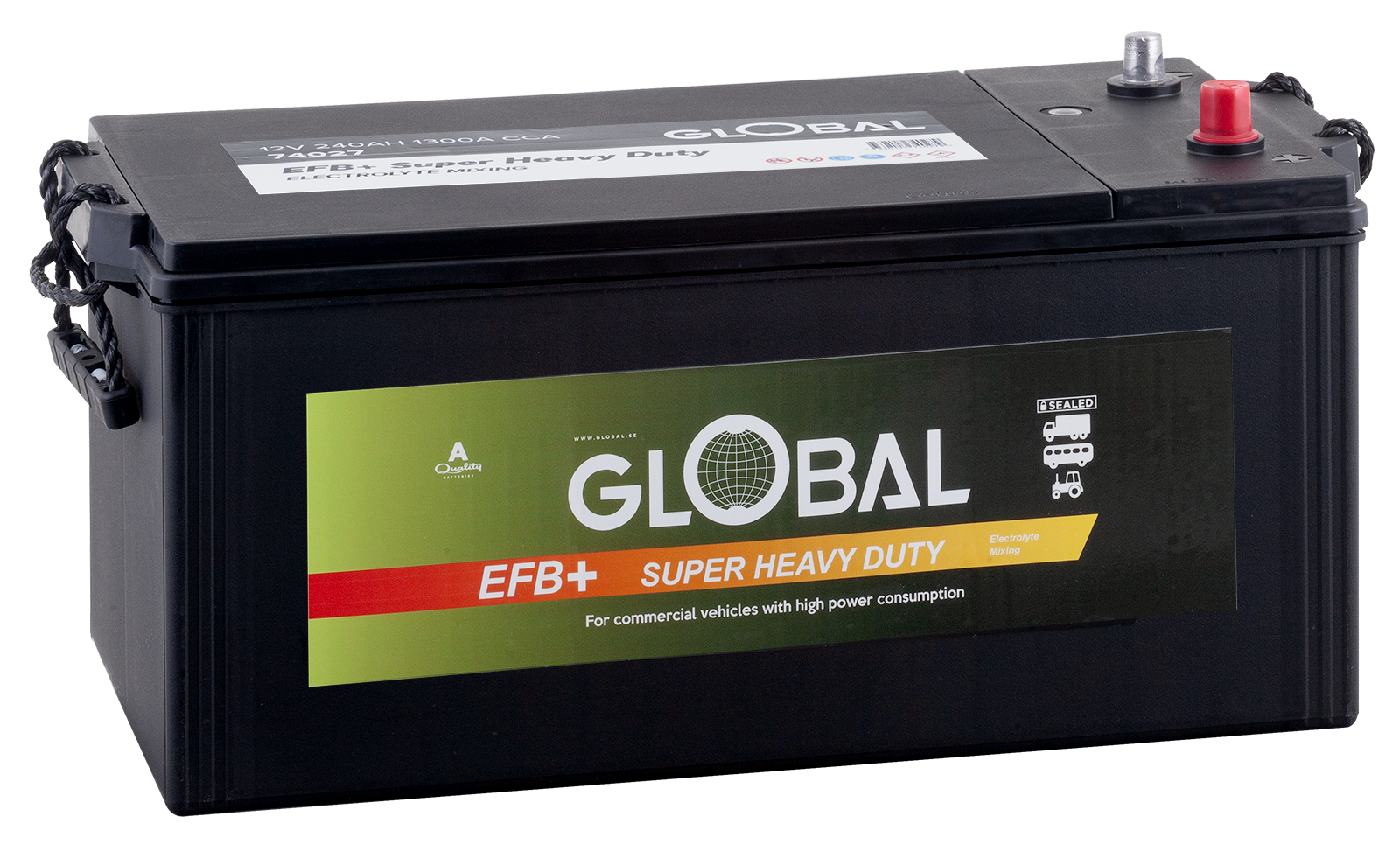 Global EFB+ SHD C START är ett kraftfullt och pålitligt EFB-batteri 12V 240Ah, optimerat för fordon med hög elförbrukning och start-stop-system. Tack vare förstärkt cykeltålighet och snabb laddningsförmåga passar det krävande applikationer.