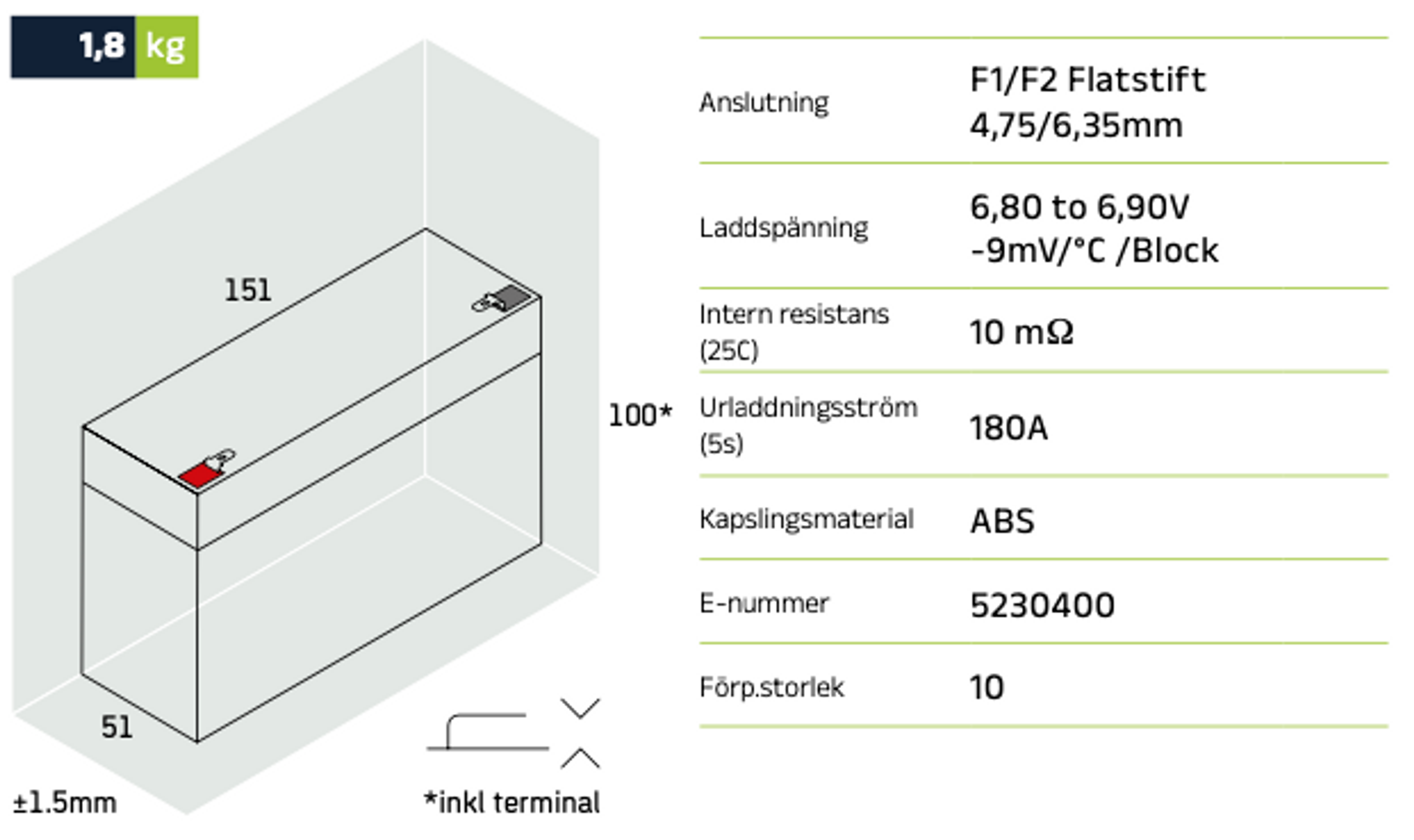 | Batterikemi | Lead-Acid Sealed Non-spillable |