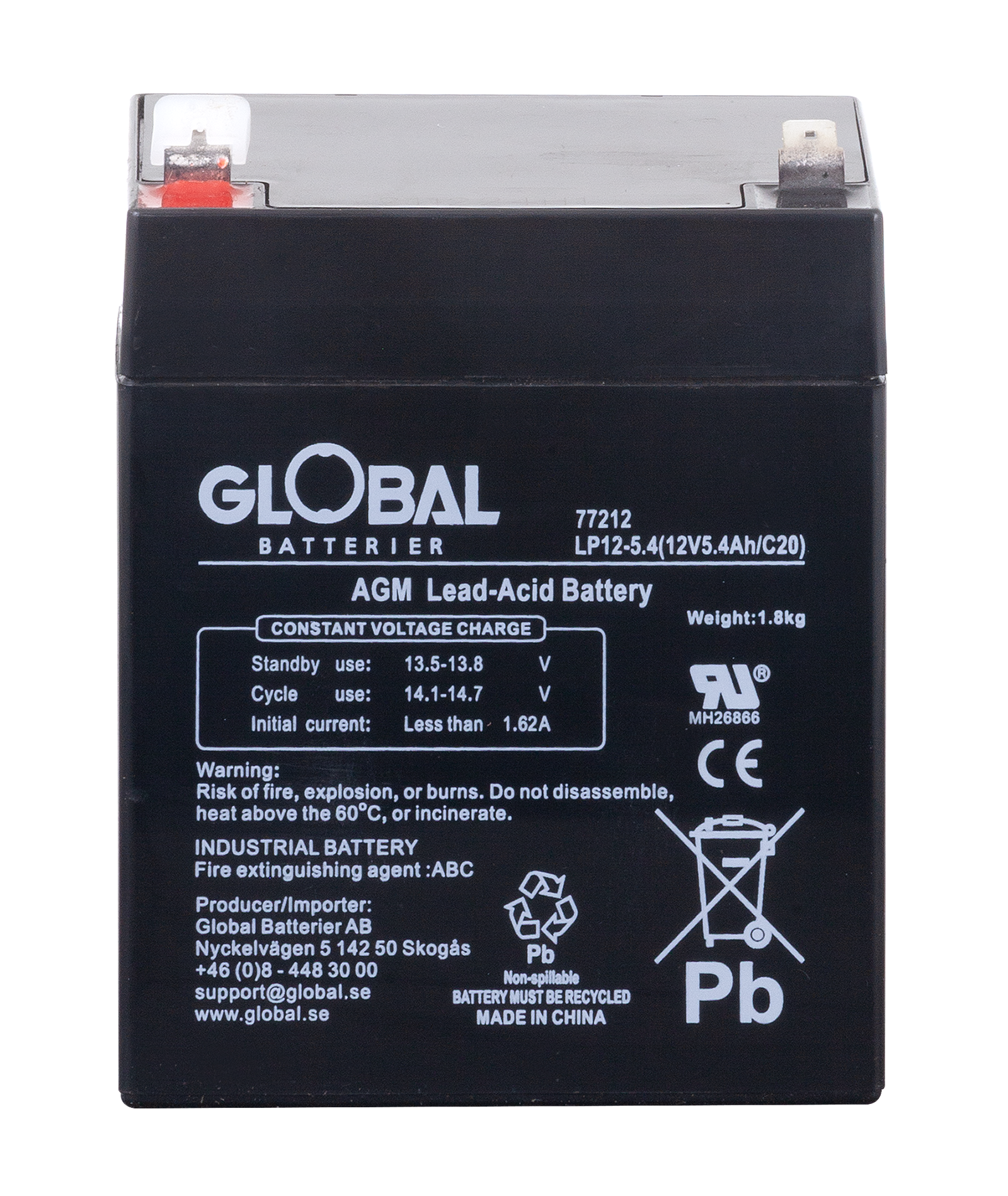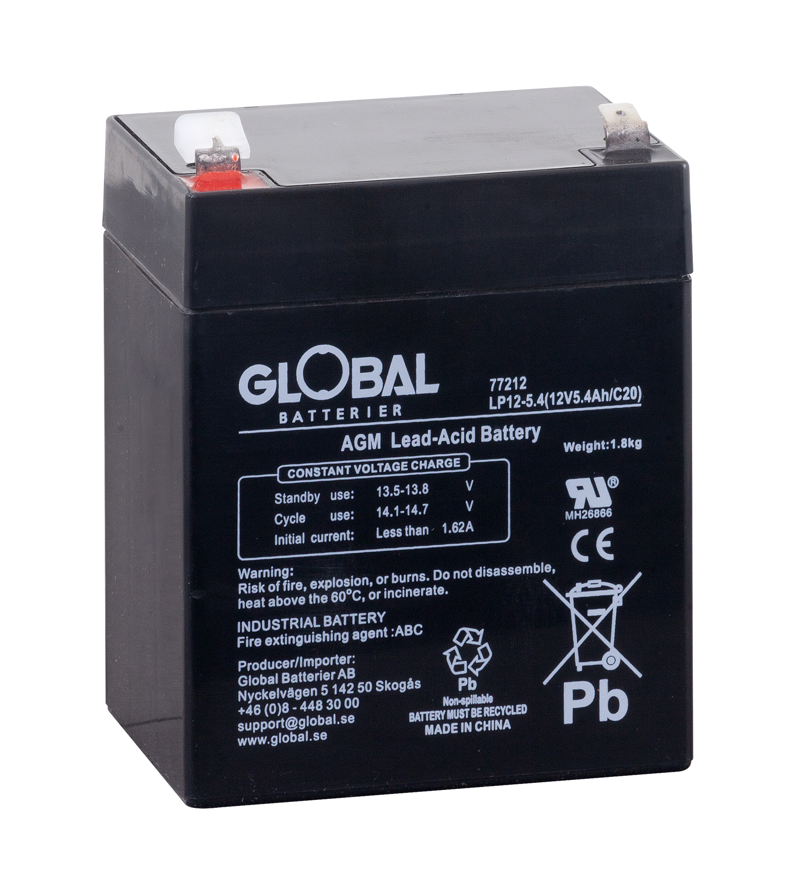 Global LP12-5.4 är ett pålitligt och högpresterande AGM-batteri (Absorbent Glass Mat), tillverkat av högkvalitativa material. Den avancerade AGM-tekniken gör batteriet underhållsfritt och helt läckagesäkert. Flexibel design möjliggör montering i flera positioner, inte enbart vertikalt.