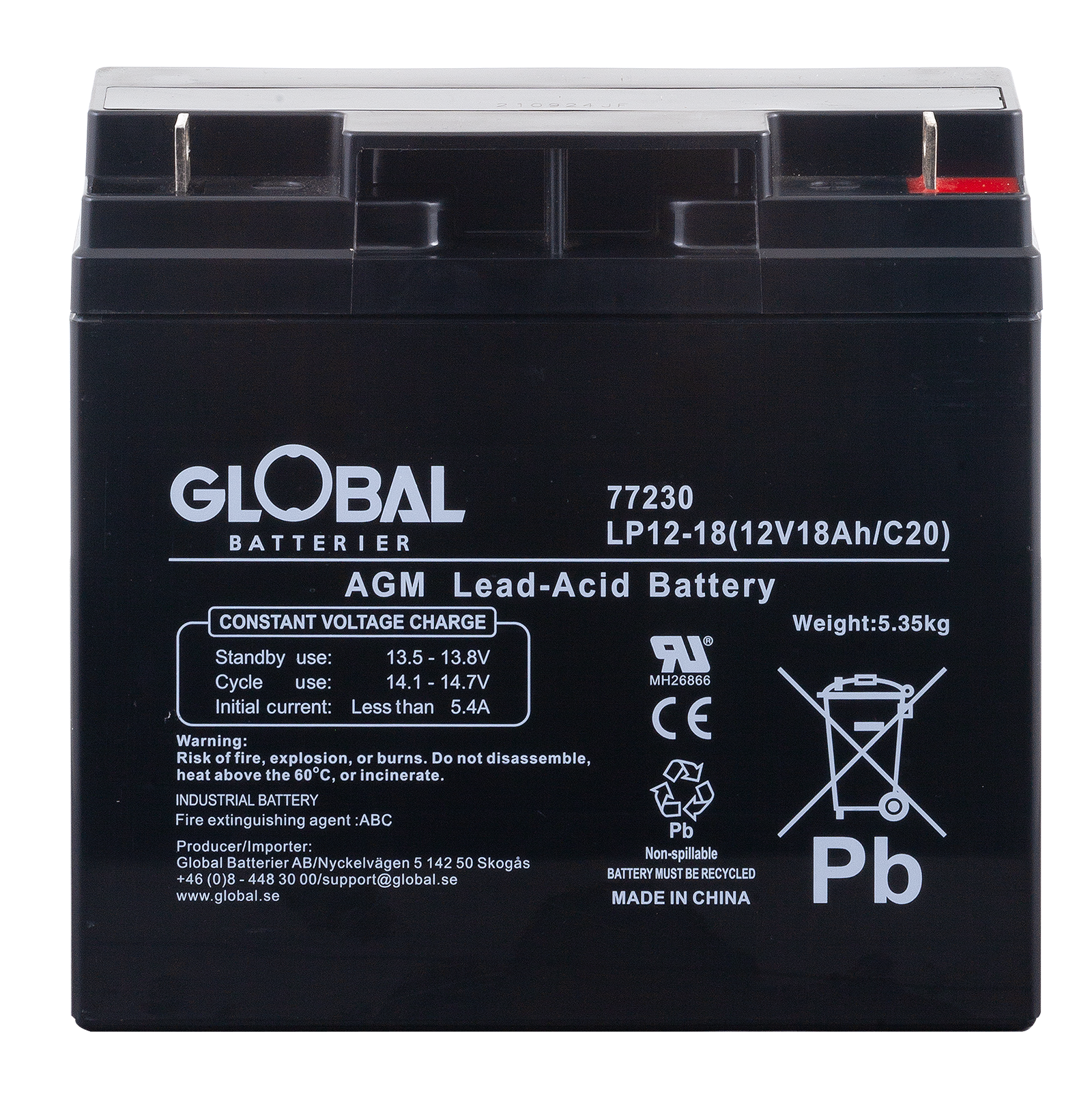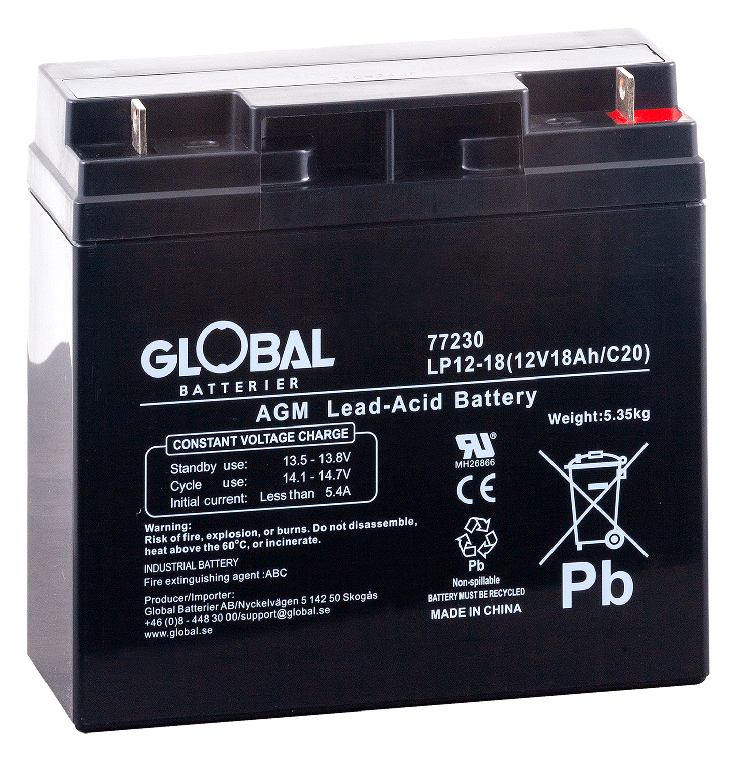 Global LP12-18 är ett pålitligt och högpresterande AGM-batteri (Absorbent Glass Mat), tillverkat av högkvalitativa material. Den avancerade AGM-tekniken gör batteriet underhållsfritt och helt läckagesäkert. Flexibel design möjliggör montering i flera positioner, inte enbart vertikalt.