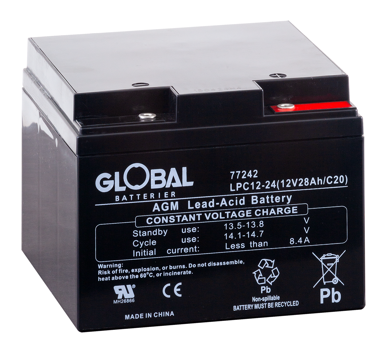Global LPC12-28 är ett pålitligt och högpresterande AGM-batteri (Absorbent Glass Mat), tillverkat av högkvalitativa material. Den avancerade AGM-tekniken gör batteriet underhållsfritt och helt läckagesäkert. Flexibel design möjliggör montering i flera positioner, inte enbart vertikalt.