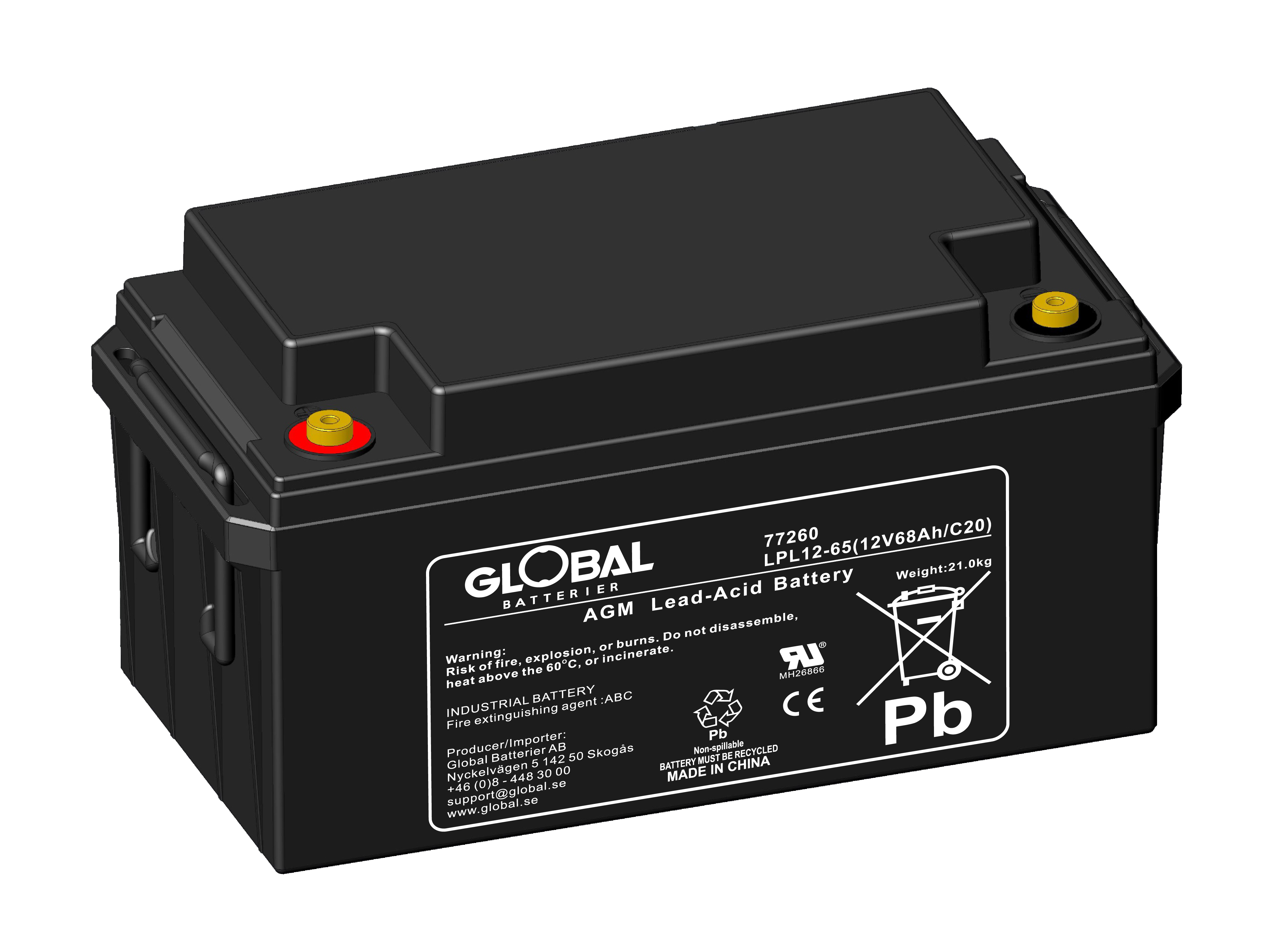Global LPL12-65 är ett pålitligt och högpresterande AGM-batteri (Absorbent Glass Mat), tillverkat av högkvalitativa material. Den avancerade AGM-tekniken gör batteriet underhållsfritt och helt läckagesäkert. Flexibel design möjliggör montering i flera positioner, inte enbart vertikalt.