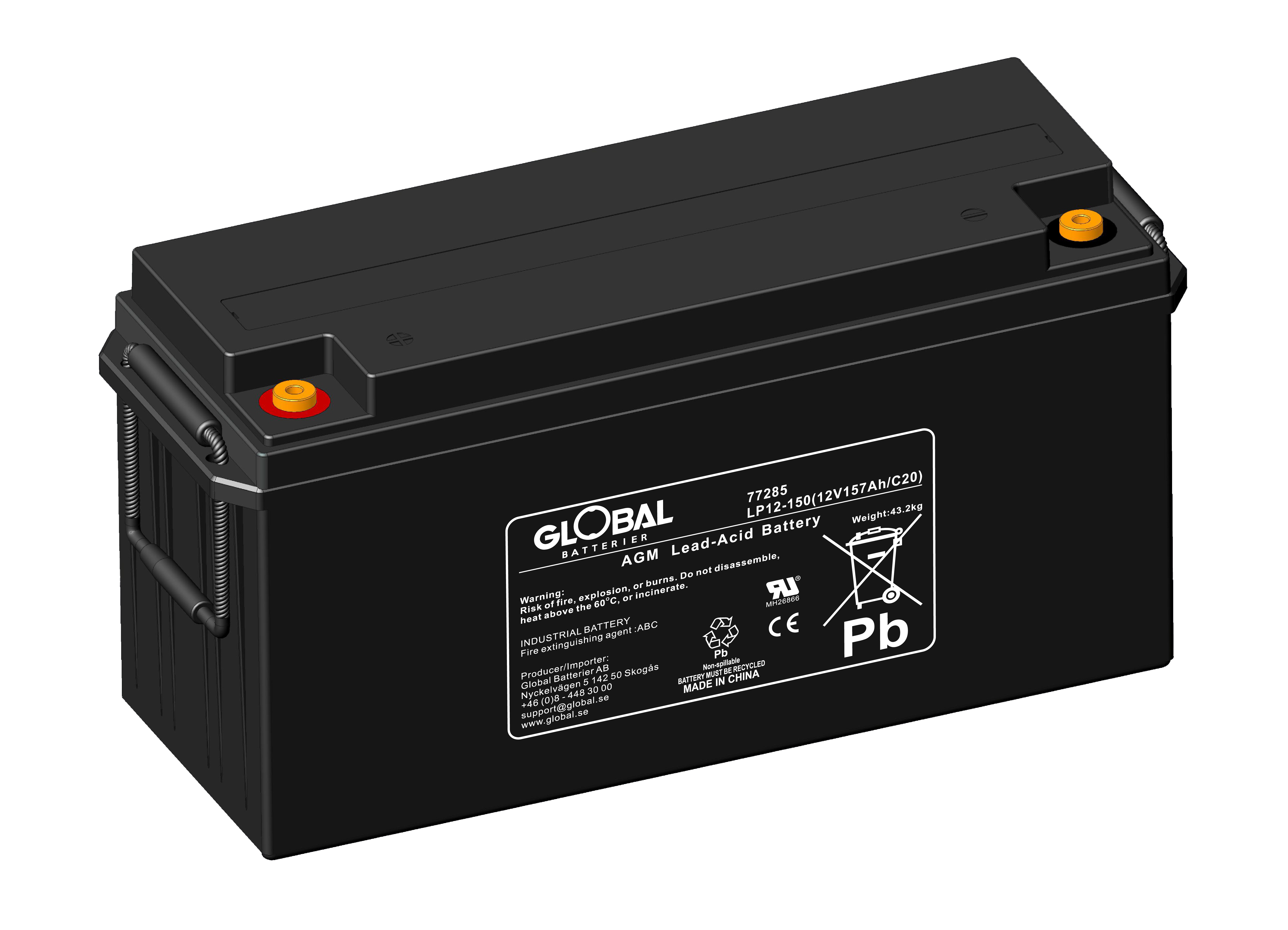 Global LP12-150 är ett pålitligt och högpresterande AGM-batteri (Absorbent Glass Mat), tillverkat av högkvalitativa material. Den avancerade AGM-tekniken gör batteriet underhållsfritt och helt läckagesäkert. Flexibel design möjliggör montering i flera positioner, inte enbart vertikalt.