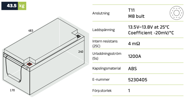 | Batterikemi | Lead-Acid Sealed Non-spillable |
