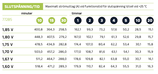 | Användningsområde | UPS, Backup, Larm, Hiss, Säkerhet, Sprinkler, Utrymning |