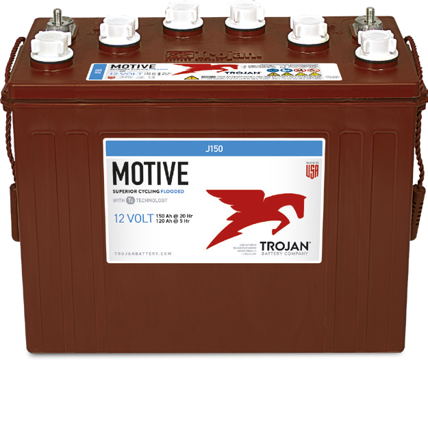 Trojan J-150 är ett kraftfullt och robust öppet blybatteri , idealiskt för utrustning där hög driftsäkerhet krävs. Våtcellsdesignen är konstruerad för att regelbundet fylla på med nytt batterivatten, vilket vilket krävs för denna typ av batteri.