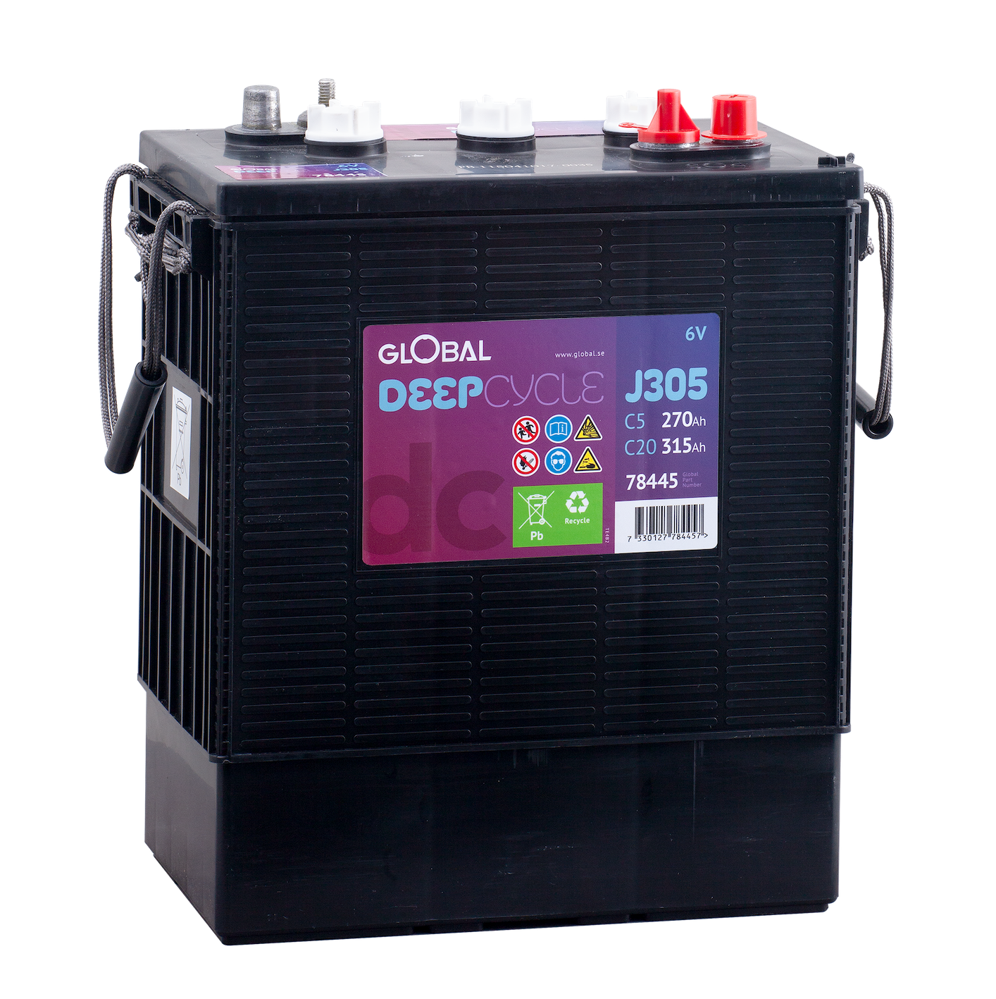 Global J305 är ett kraftfullt och robust öppet blybatteri 6V 315Ah, idealiskt för utrustning där hög driftsäkerhet krävs. Den klassiska våtcellsdesignen är konstruerad för att regelbundet fylla på med nytt batterivatten, vilket vilket krävs för denna typ av batteri.