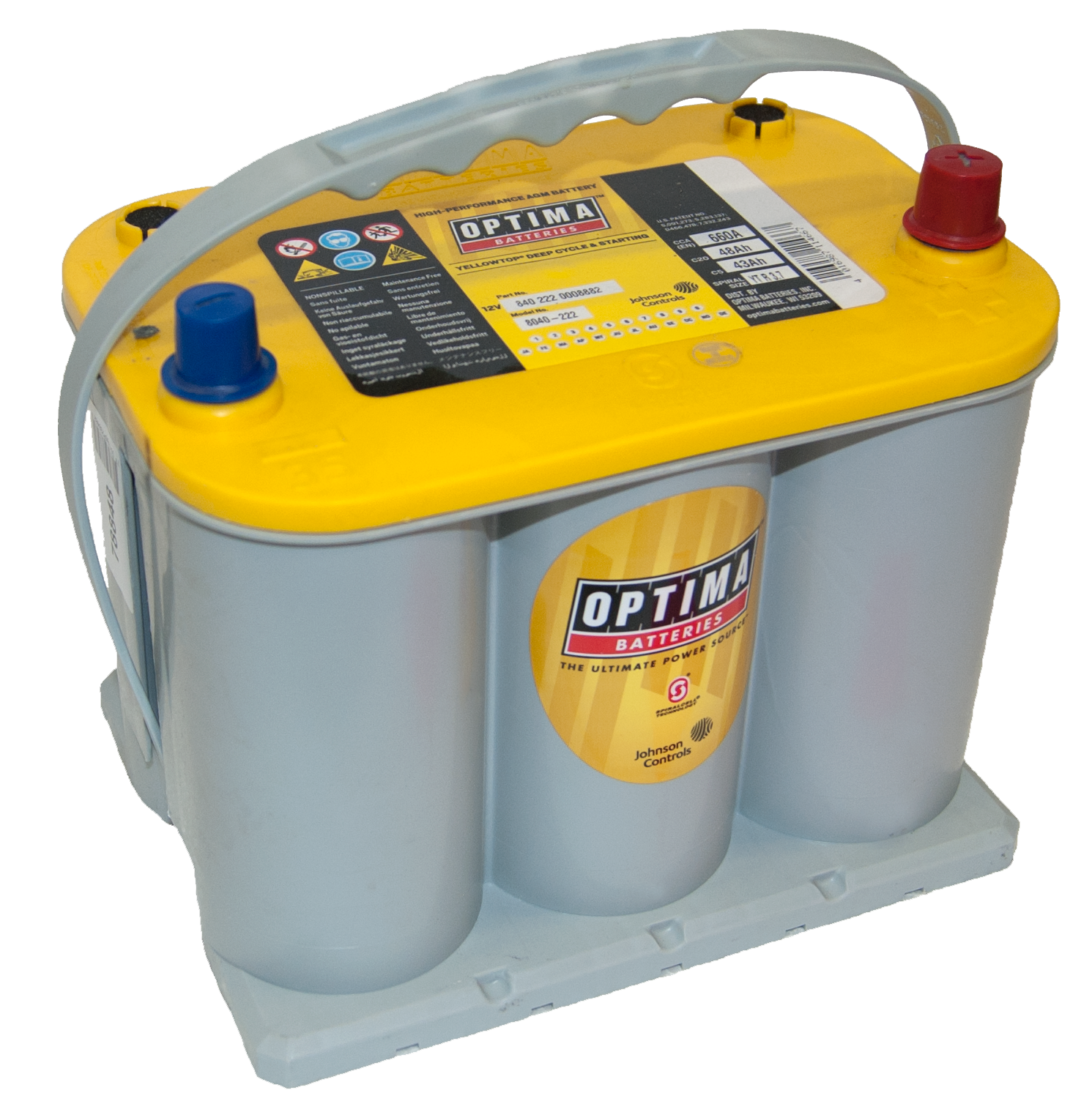 Optima YELLOW TOP R 3.7 är ett pålitligt och högpresterande AGM-batteri (Absorbent Glass Mat), tillverkat av högkvalitativa material. Den avancerade AGM-tekniken gör batteriet underhållsfritt och helt läckagesäkert. Flexibel design möjliggör montering i flera positioner, inte enbart vertikalt.