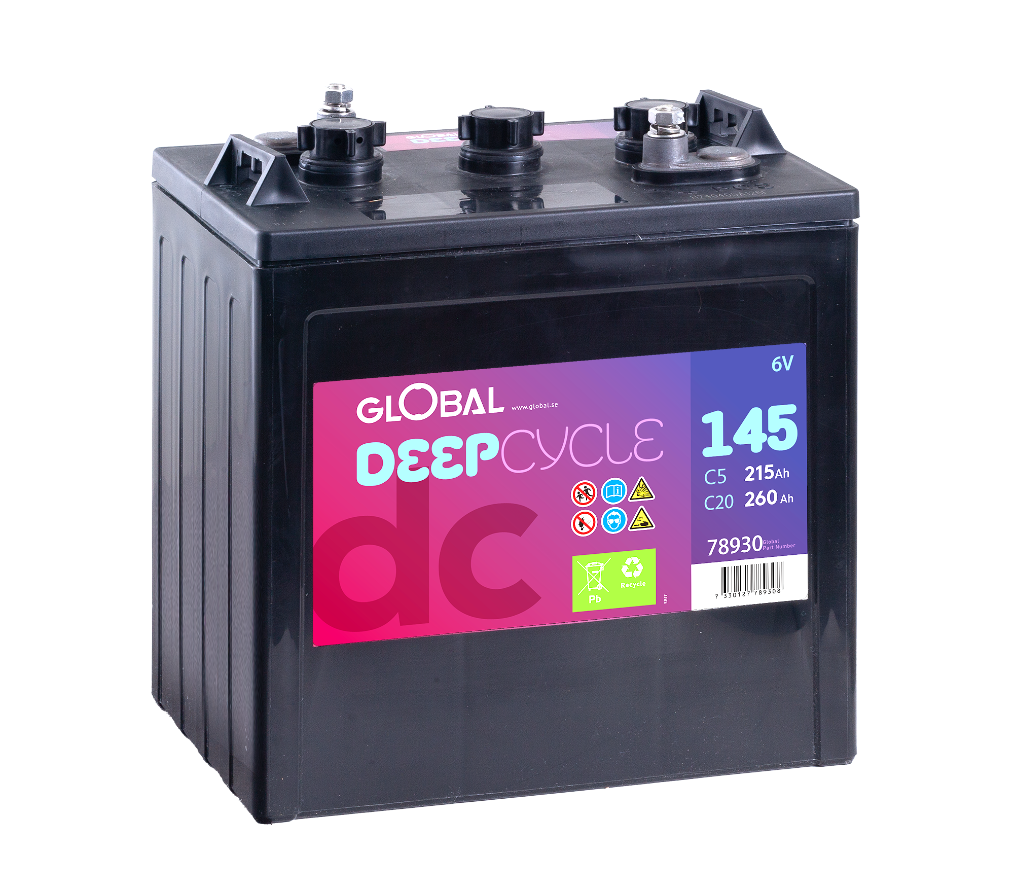 Global L-145 är ett kraftfullt och robust öppet blybatteri 6V 260Ah, idealiskt för utrustning där hög driftsäkerhet krävs. Den klassiska våtcellsdesignen är konstruerad för att regelbundet fylla på med nytt batterivatten, vilket vilket krävs för denna typ av batteri.